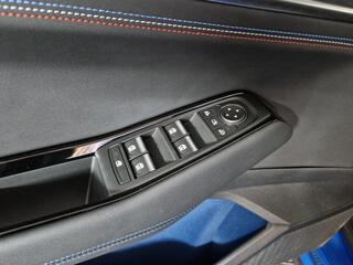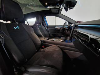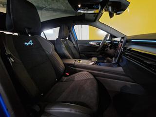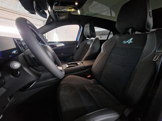 Sellerie mixte Alcantara avec surpiqures bleues et logo Alpine lumineux